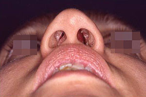 Saddle nose is often characterized by a loss of height of the nasal profile, frequently associated with rear projection, lowering, and crushing of the tip. The saddle nose is usually caused by trauma, infection (abscess of the nasal septum), or excessive removal of the supporting structures. The correction consists of the reconstruction of the entire nasal skeleton with autologous cartilaginous grafts, taken from the ear or the ribs of the same subject.